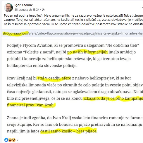 Nekdanji generalni direktor nacionalke Igor Kadunc, ki je nakup helikopterjev za reševanje prijavil na KPK je tokrat obračunal z avtorji anonimke o ozadju nabave helikopterjev za reševanje, ki za razliko od MSM medijev celotno afer postavlja v nekoliko drugačno luč. Zapis smo objavili na našem portalu v članku: “Skupina, ki preveč vidi in ima dovolj!” : Po “mehiški limonadi” v osrednjih medijih, sedaj še anonimka o helikopterjih, ki razkriva zakulisje in akterje celotne afere, tokrat pa objavljamo odgovor Igorja Kadunca.