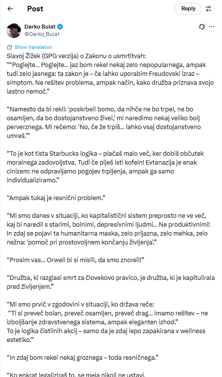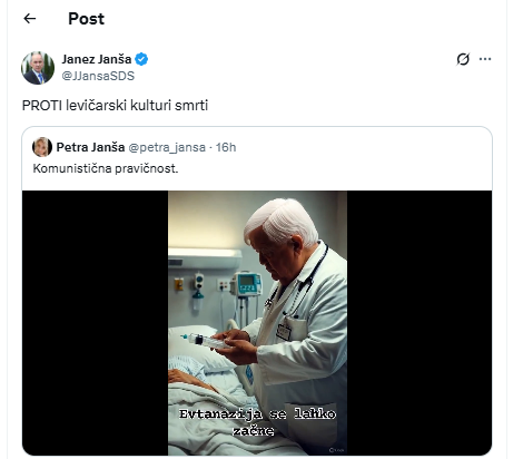 Na družbenem omrežju X pa se je pojavila ChatGPT verzija izjav Slavoja Žižka in video Milana Kučana, ki ga je Janez Janša ilustriral z zapisom: “PROTI levičarski kulturi smrti”