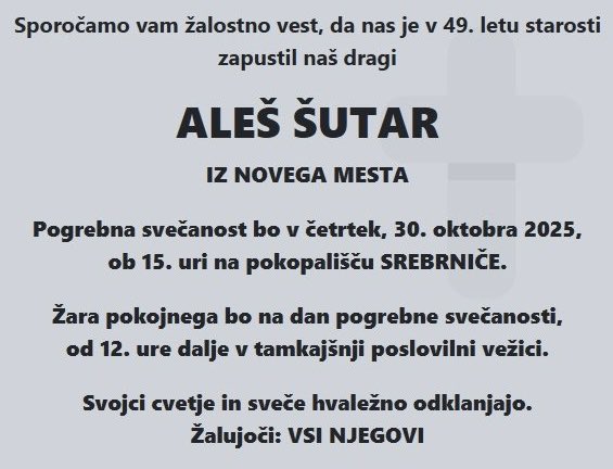 Na novomeškem pokopališču Srebrniče so se danes množično poslovili od 48-letnega Aleša Šutarja, ki je umrl po sobotnem napadu. Ob spominih na pokojnega pa je bilo slišati tudi pozive k miru, spoštovanju in dialogu.