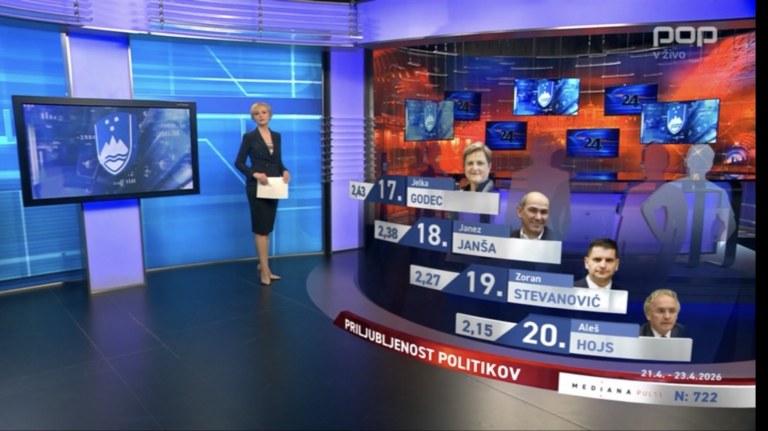 Če bi bile volitve minulo nedeljo, bi največ volivcev (24,2 odstotka) prepričala SDS, sledi Gibanje Svoboda s 23,2 odstotka. Na vrhu lestvice priljubljenosti politikov je predsednica republike Nataša Pirc Musar, sledita ji predsednik SD Matjaž Han in evropska komisarka Marta Kos, je pokazala anketa Mediane za POP TV.