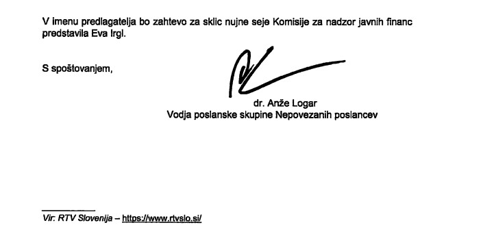 Seja komisije za nadzor javnih financ sicer v seriji sej delovnih teles ne bi bila nič posebnega, če je ne bi zahteval poslanec Anže Logar, ki je bil od ustanovitve stranke “reden” komentator in gost Tarče Erike Žnidaršič in je, kot je zapisal uporabnik družbenega omrežja X Vladozlom, “naključje ustvarilo rednega komentatorja” . Logar je bil osemkrat gost Erike Žnidaršič od ustanovitve stranke.